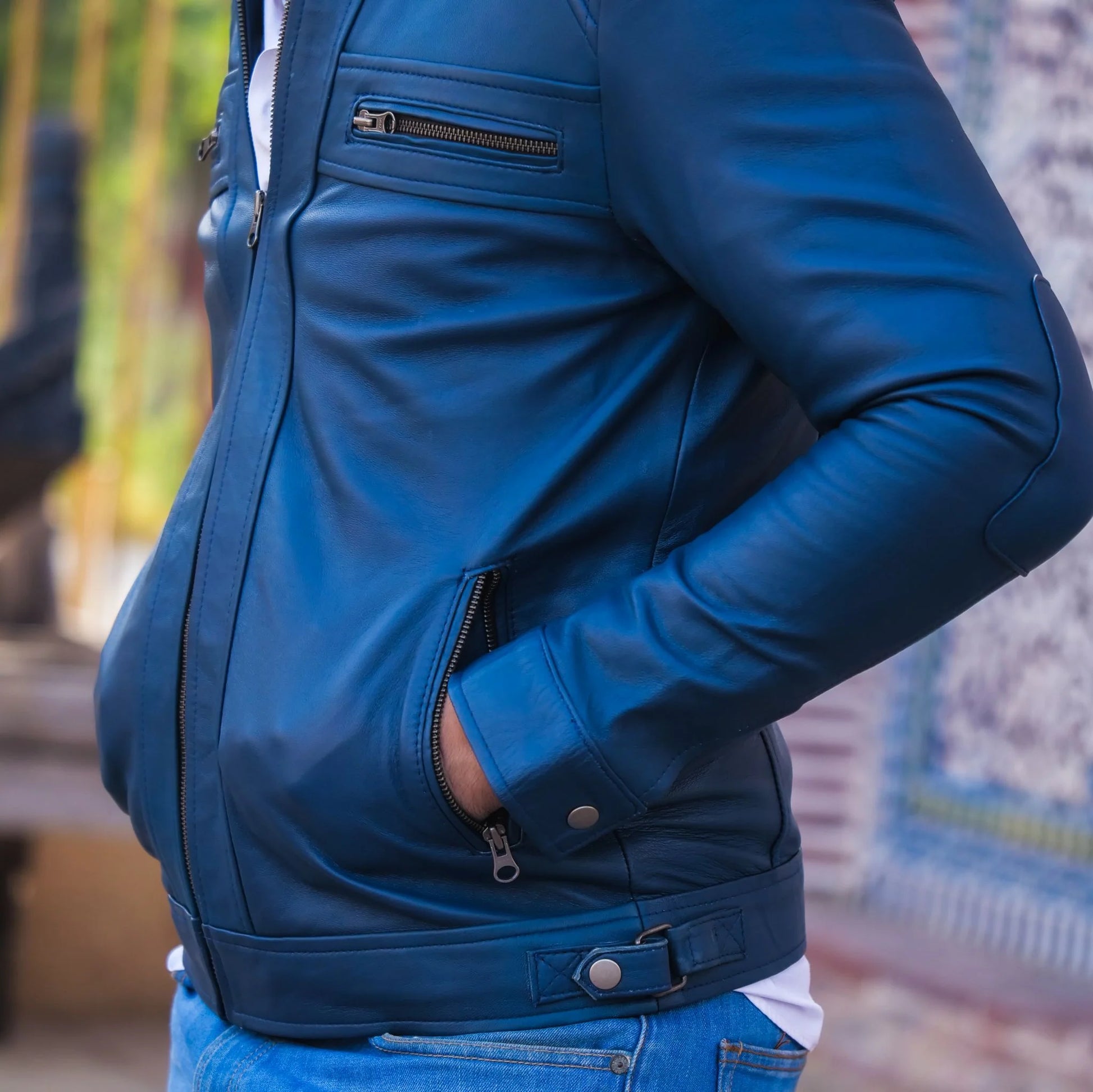 Men's Casual Signature Diamond Lambskin Leather Jacket-Blue